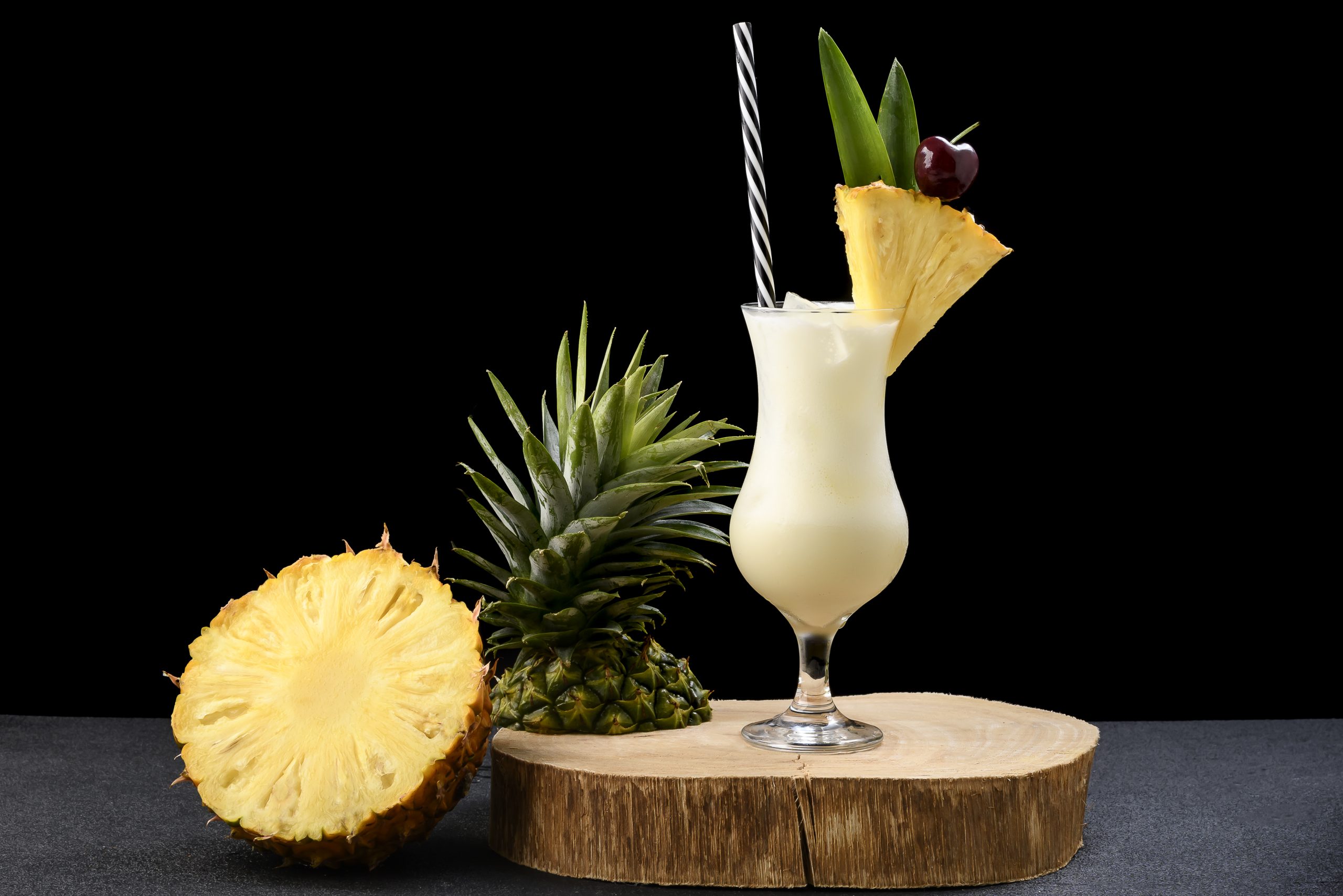 - Rodajas de piña y cerezas marrasquino para decorar